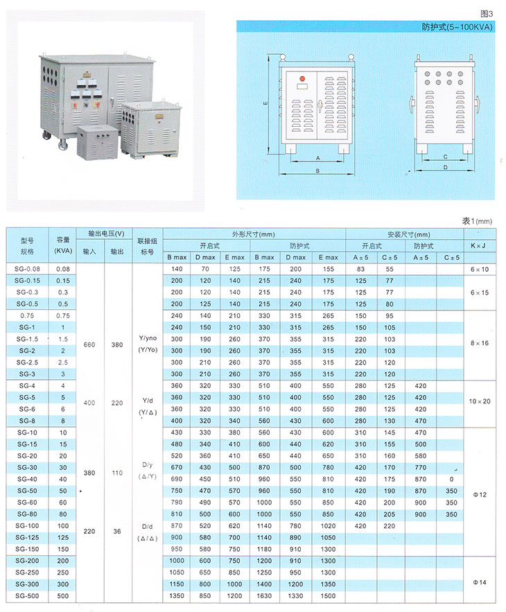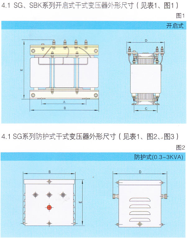 SG、SBK系列三相干式變壓器可制成開(kāi)啟式或防護(hù)式,具有損耗低、噪聲小、防火性能好和不污染環(huán)境等優(yōu)點(diǎn):其中防護(hù)式是采用鋼板加工成箱殼,變壓器在箱殼內(nèi)部,箱殼外有進(jìn)出線孔,以便安裝電源線路。另外,防護(hù)式可按用戶要求增加電壓電流監(jiān)控儀表,80kVA以上大容量的還可增加軸流散熱風(fēng)機(jī),也可增加轉(zhuǎn)向輪以便移動(dòng)。